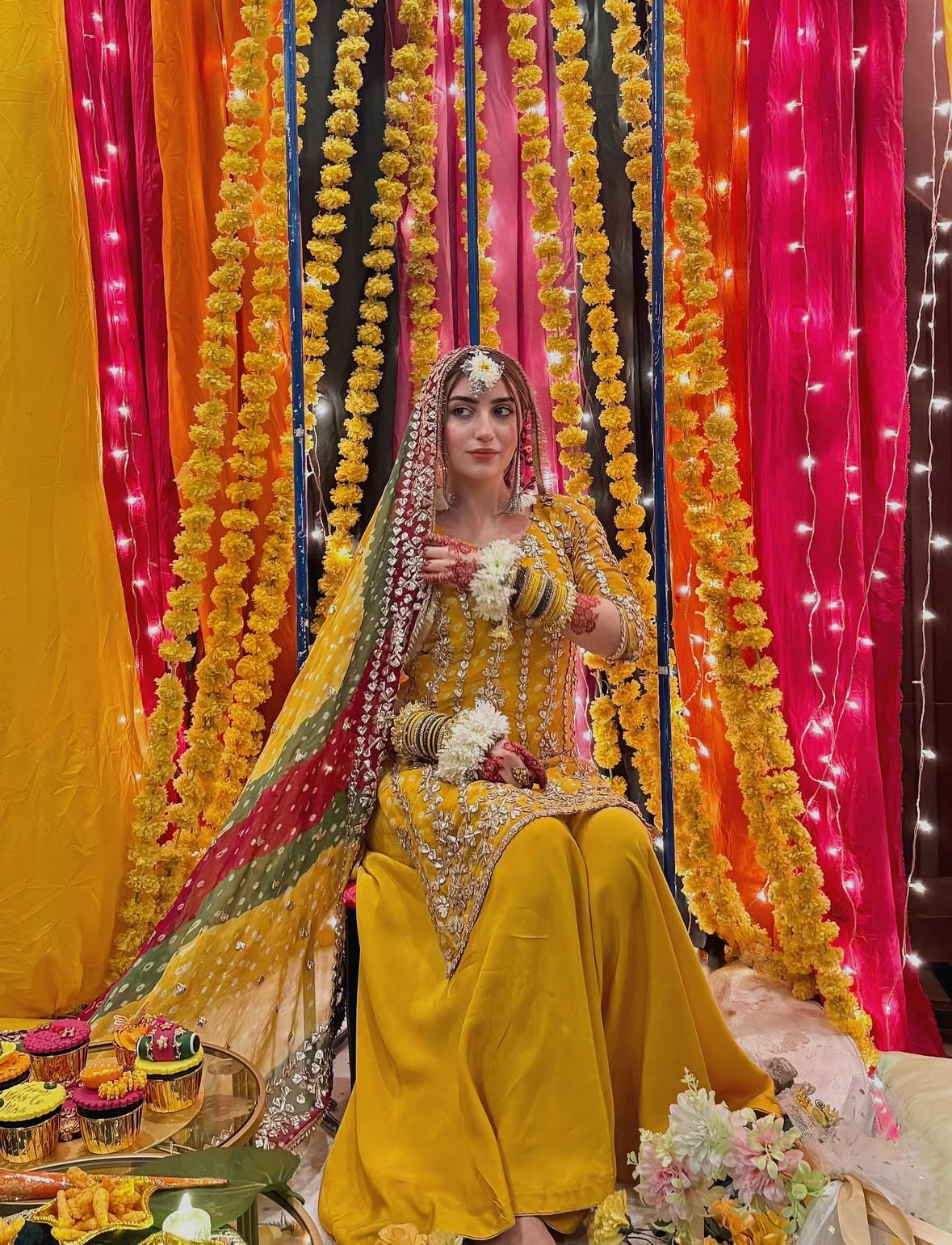 Handmade LCD Gotta Work on Soft Chunari Chiffon Fabric Embroidered Shirt Along With Embroidered Chunari Dupatta.