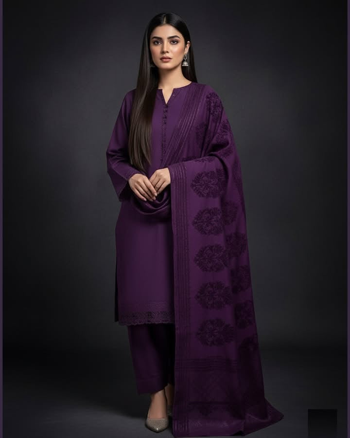 Peach Leather | Unstitched Shirt Dupatta Trouser 3 Piece