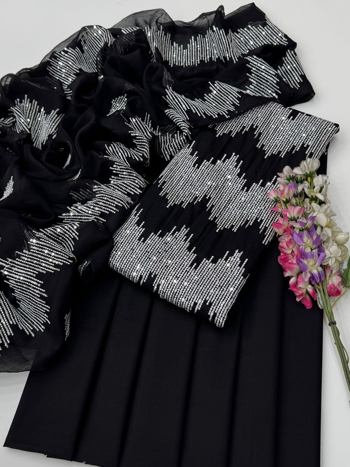 Fancy Sequence Embroidery Pure Lawn Shirt And Trouser Along With Chiffon Sequence Embroidered Duppata.